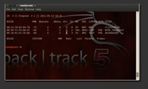 Lets type in airodump-ng mon0 and this command is going to initiate the scanning process for wifi networks. As you can see in the picture below, a few WPA encrypted networks should pop up. I’m going to attempt to crack the network under thebssidSKIDH?CKER. Take a note of the channel, and you want to copy the BSSID for later use.